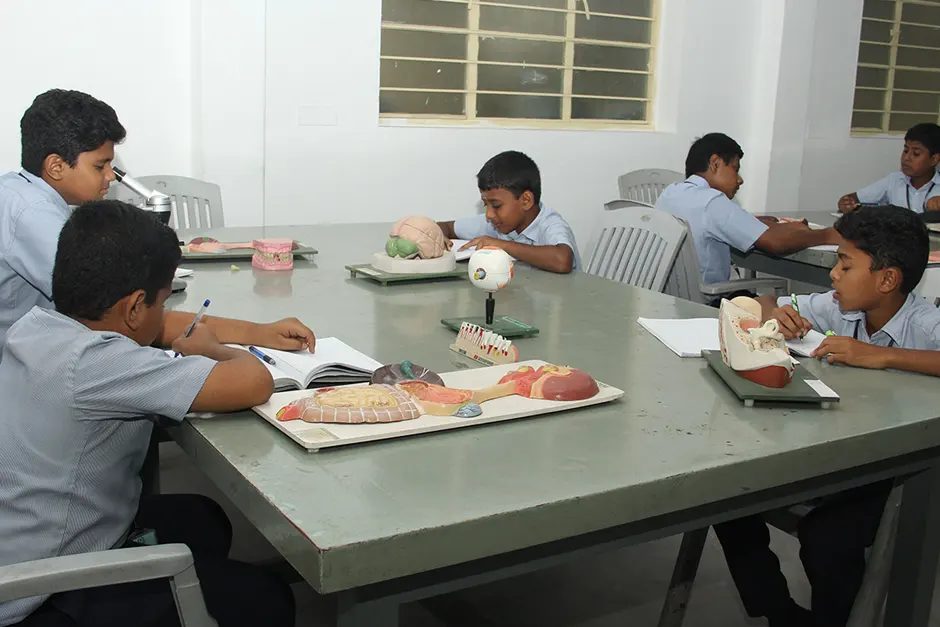 The school has futuristic infrastructure spacious well ventilated classrooms supported by Audio Visual aids, smart classes equipped with computer aided learning, well stocked library, spacious indoor and open auditoriums, well equipped Biology, Physics, Chemistry labs for senior and Junior sections of students, modernized AC Computer lab, advanced Robotic Lab, spacious playground with facilities for cricket, Basketball, Football, Badminton and other sports. Our school is a place for joyful learning from Pre KG to XII Standard.